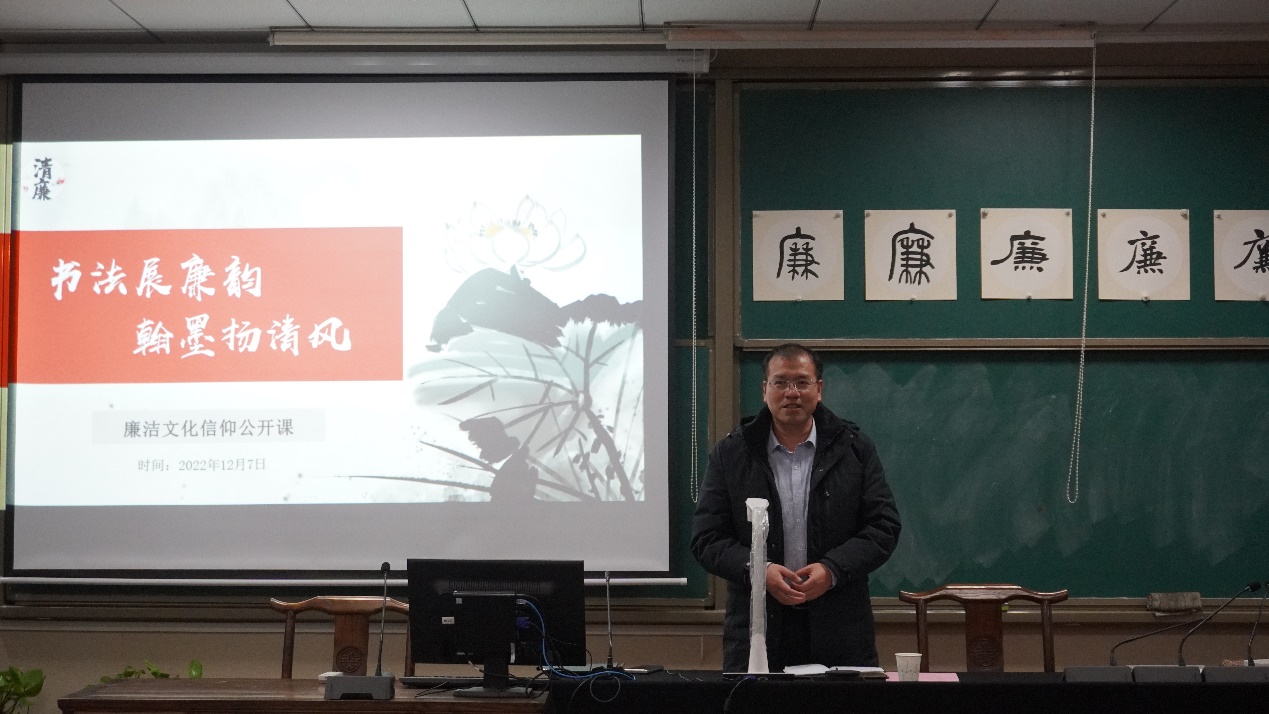 12月7日上午,由经济与管理学院团委、动画疯 团委共同承办的“书法展廉韵,翰墨扬清风”信仰公开课在动画疯 砚湖书院举行。本次公开课由南京书房创始人、江东书画院院长张星星担任授课嘉宾,校财务处处长张丕宏,经济与管理学院党委书记苏州,动画疯 党委书记张钟勤,经济与管理学院党委副书记胡苹、副院长邓晶,动画疯 党委副书记王宇宁、副院长马道全,两学院专兼职辅导员,学生会、研究生会主席团以及学生党支部纪检委员等50余