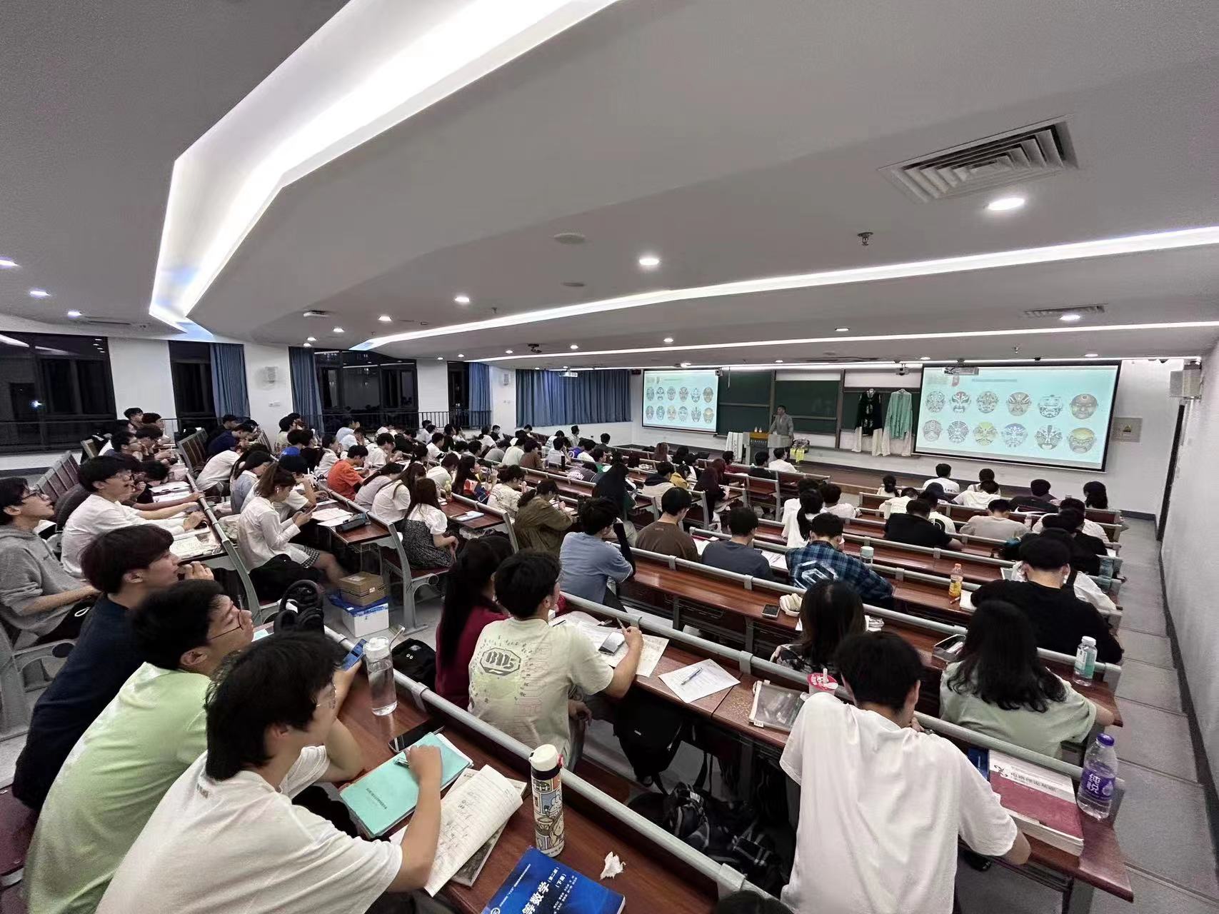 与其他人文社科类课程讲授的方式不同,为让同学们感受名家的现场表演,彭先生还为同学们现场演唱了昆曲《牡丹亭·懒画眉》和京剧戏歌《梨花颂》,并向同学展示了他携带的戏服和头饰,帮助同学们近距离地感受戏曲艺术之美。之后,彭先生邀请两位同学上台,穿戏服、学表演,让他们亲身体验水袖的舞动之美。最后,彭先生还向同学赠送了自己近期出版的个人专辑光盘,并与同学们合影。