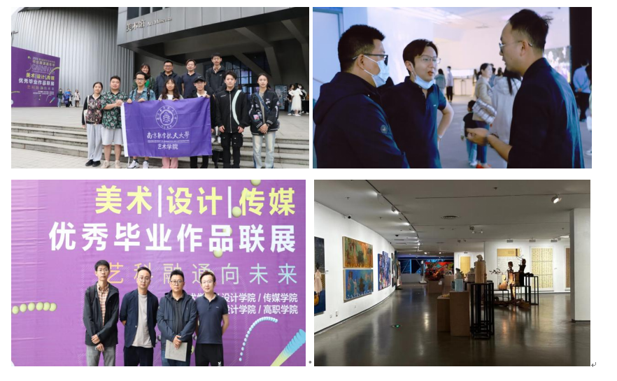 5月22日,动画疯 美术系师生赴南京动画疯 学习交流。南京动画疯 美术馆林书传副馆长接待师生,带领大家参观南艺520毕业展,为我们讲解优秀学生作品。他还与动画疯 带队老师探讨当下美术教育建设中艺科融合的重要性,对南航艺工融合的建设也表示认可。展馆内展览了油画、雕塑、景观设计、室内设计、产品设计、数字媒体等30余个本科及研究生专业方向的作品。师生也看到了包括元宇宙展厅、国家自然科学奖一等奖项目视觉艺术展等在内的适应文化新业态的多媒体艺术作品。参观完展览后,师生还观摩了南艺电影电视学院毕业大戏《李叔同》,感慨于戏剧中的家国情怀的同时,也学习到了优秀的舞台设计和灯光设计,同学们相互交流观展心得,收获颇丰。