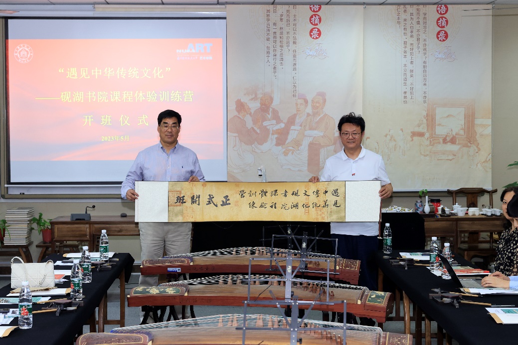 在老师同学们的热烈掌声中,板院长和金院长一起打开书画长卷。卷轴舒展,宣告本次训练营正式拉开序幕。同学们即将徜徉在中华民族悠久的历史长河中,体验感知中国传统文化的独特魅力。