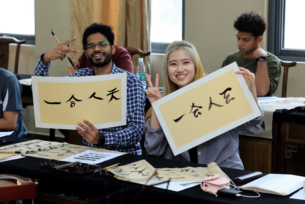 乌玛同学回顾课堂:“我是来自巴基斯坦的乌玛。在中国书法课上的经历让我对艺术有了新的钦佩,对中国文化有了更深的理解,也有了一种深刻的满足感。它激发了我继续探索书法这一中华传统文化的愿望。很感谢有机会参加研湖书院的课程体验营,我期待着进一步深入学习探索中国文化的世界!”