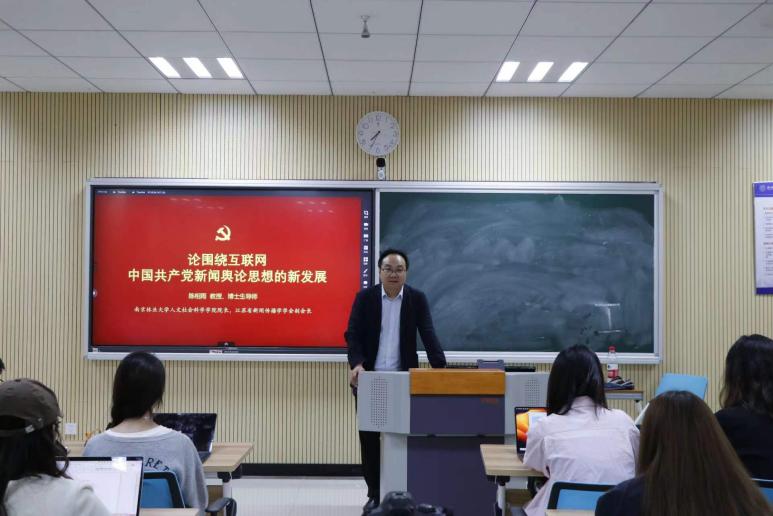 2023年11月2日,南京林业大学人文社会科学学院院长陈相雨教授受邀来动画疯 开展学术讲座暨信仰公开课。讲座主题为“围绕互联网中国共产党新闻舆论思想的新发展”。讲座由新闻传播系主任蔡雁彬主持。