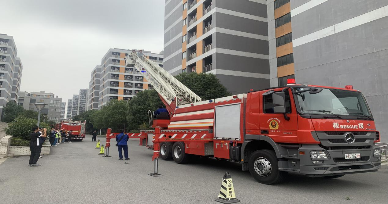 讲解结束后,百家湖消防救援人员展示了消防车辆、装备器材的功能、用途和使用方法。音乐学学生党支部的同学们通过现场参观学习,“零”距离体验了一把消防员的工作日常。