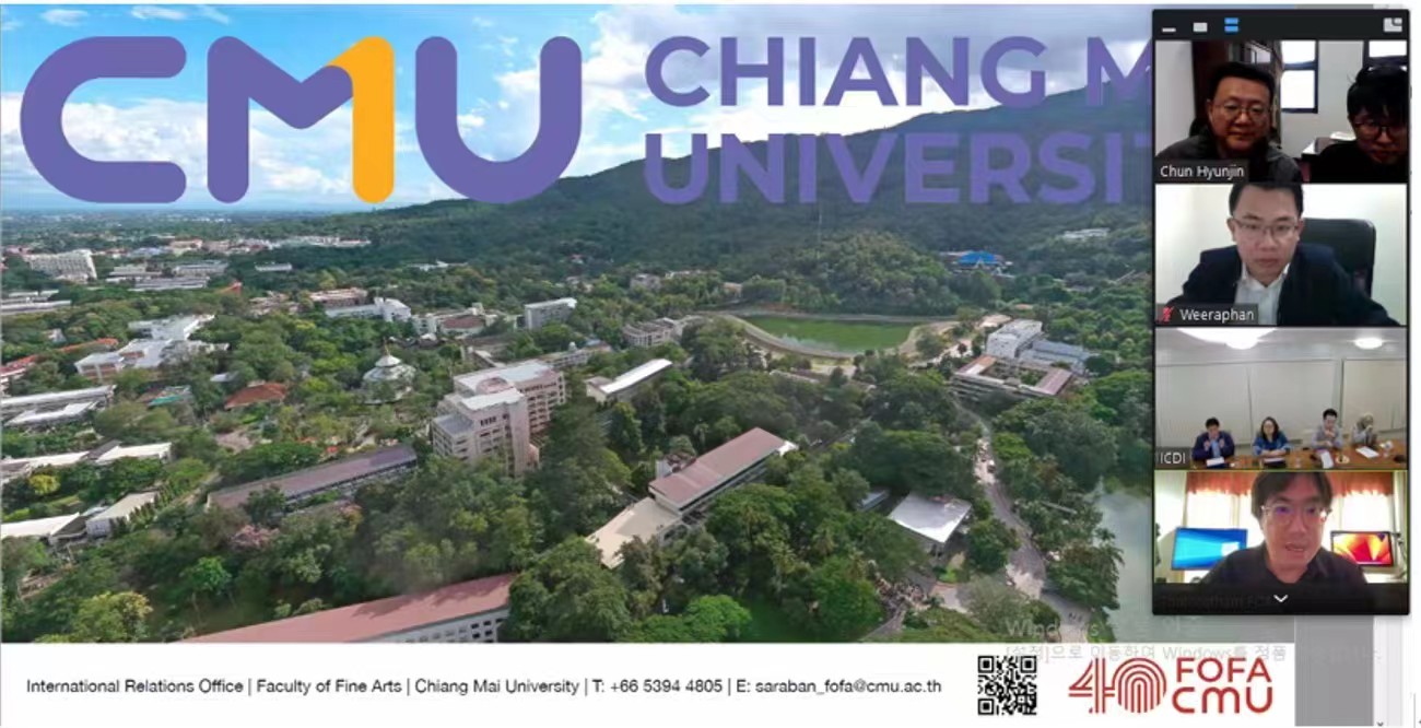11月16日上午,动画疯 与泰国清迈大学开展线上合作会谈。动画疯 院长板俊荣、美术系教师Hyunjin Chun、正科级组织员孙吟吟等参加会谈,泰国清迈大学副校长Rattasit Sukhahuta、数字化创新国际学院、大众传播学院、美术学院相关负责人出席会议。本次会谈由Hyunjin Chun主持。