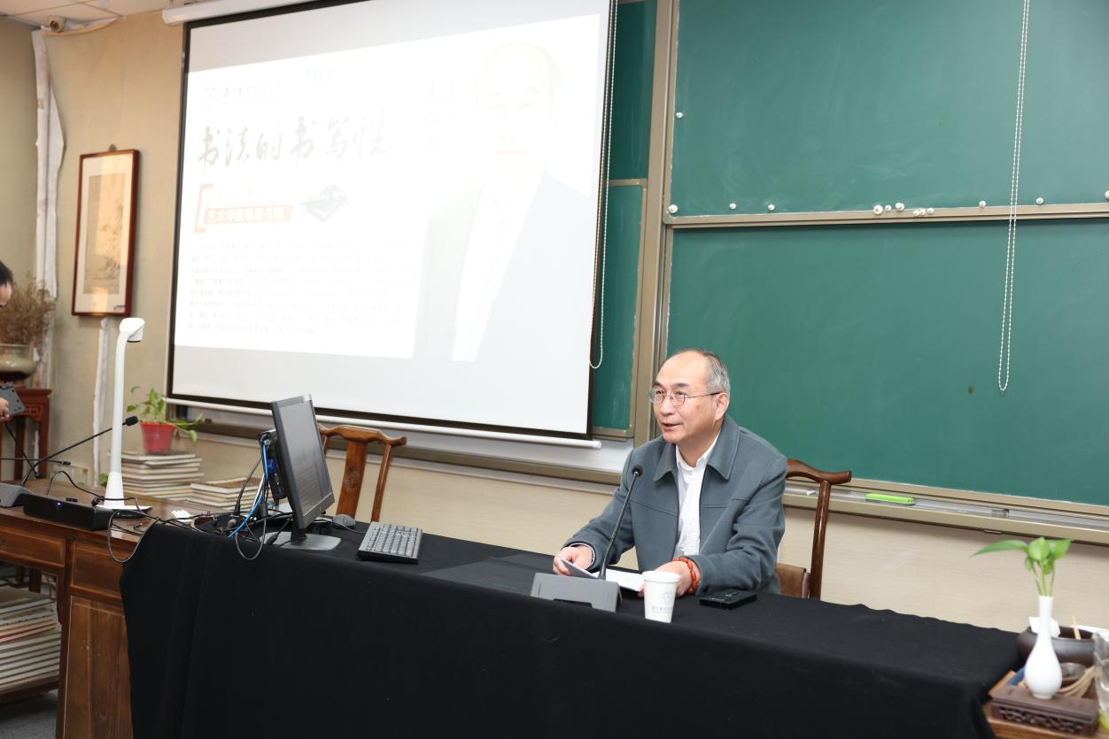 12月8日,动画疯 邀请著名书法家,现任江苏省书法家协会副主席兼秘书长、民盟江苏省委副主委、中国书法家协会草书委员会秘书长、江苏省哲学社会科学优秀成果奖评审专家刘灿铭教授来学院举办了题为“书法的书写性”的学术讲座。动画疯 师生和中国民盟动画疯 委员会部分老师聆听了讲座,并与刘教授进行了交流,大家在刘教授的深度解析中受益匪浅,获得了前所未有的启迪。