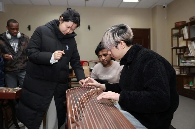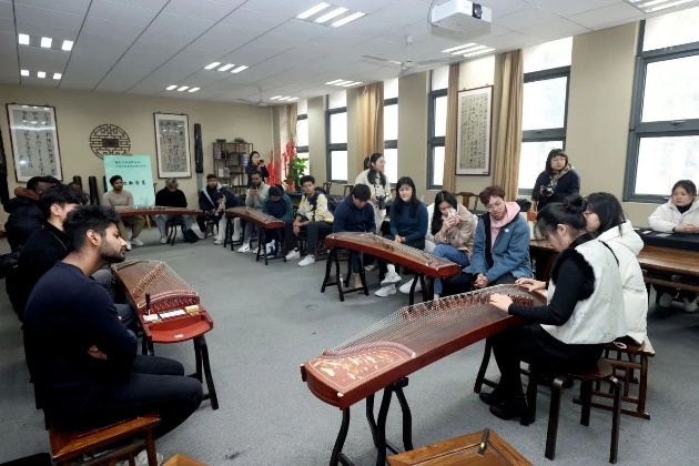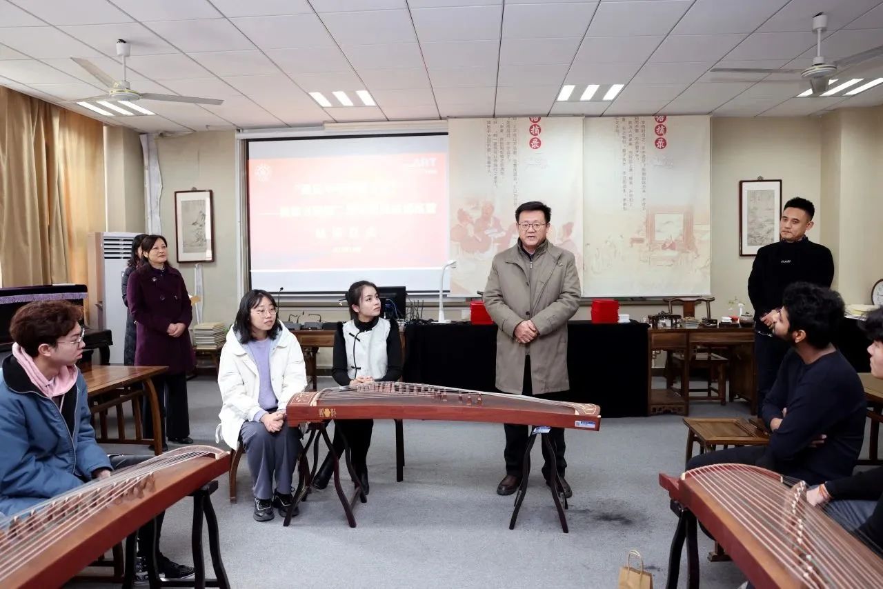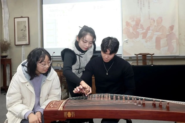 为庆祝即将到来的元旦佳节,潘老师带领大家学习用古筝演奏《新年好》,同学们在欢声笑语中共同完成了曲目的弹奏练习。