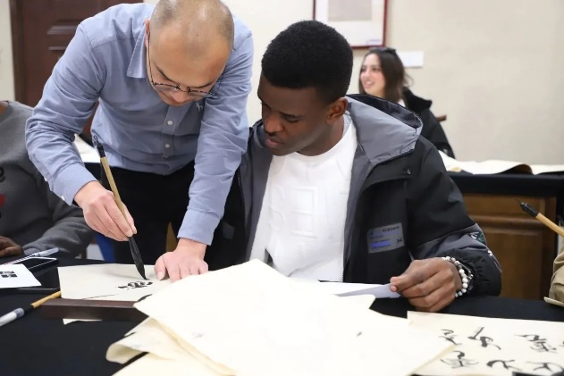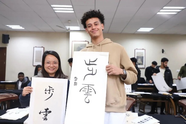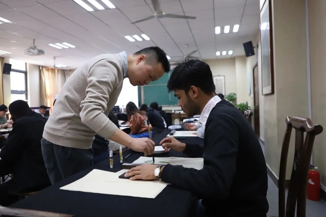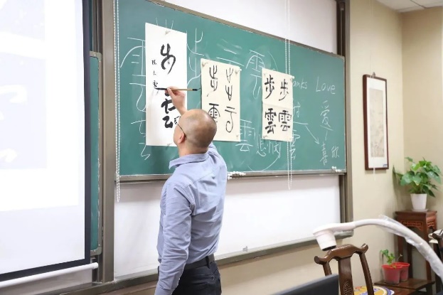 训练营第一讲为书法课,由动画疯 杰出院友、砚湖书院书法教师张星星进行现场授课。张老师从书法的历史开始讲起,向留学生们传达:“中国书法,是中国汉字特有的一种传统艺术。”