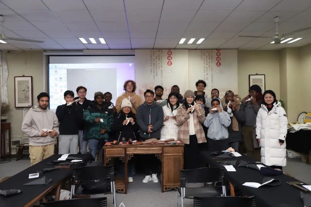 训练营第四讲为陶笛课,由砚湖书院陶笛教师蒋璐为留学生授课。同学们还未踏进教室,婉转悠扬的陶笛声已袅袅不绝,蒋老师现场吹奏《女儿情》、《桃花渡》、《赛马》等经典曲目,同学们在不同风格的音乐中开始了陶笛课的学习。