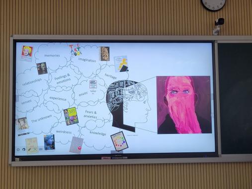 他总结到,既然人工智能时代已经到来,不仅冲击艺术领域,还有写作、翻译等等,我们如何做好应对?虽然人类有限的大脑和算力,不能做到像AI整合图像大数据。但是我们人类拥有imagine,有feel,有soul,记忆、想象、遗传、感觉、经验、未知、知识、命运构建我们的创意内驱力。说到这里,他拿起粉笔在黑板上画了一个简单的头像,AI和粉笔一样是工具,关键是操控工具的人,怎么有效利用它,以生成想要的结果。