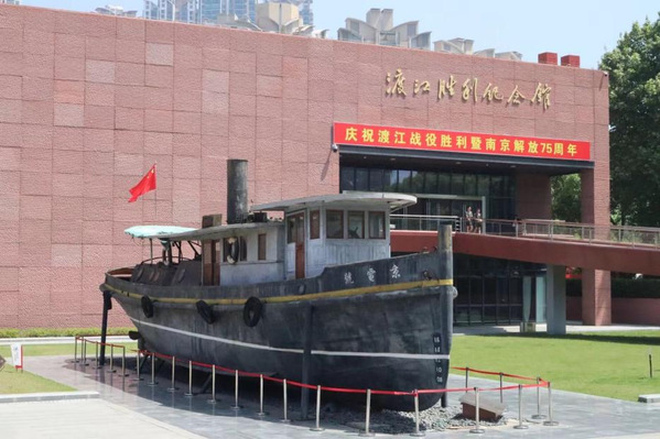 在下沉式广场,同学们参观了享有“渡江第一船”美誉的“京电号”小火轮,该船在渡江战役期间共计运送1400余名解放军,站在船前,百万雄师过大江的雄风与豪情尽收眼底。
