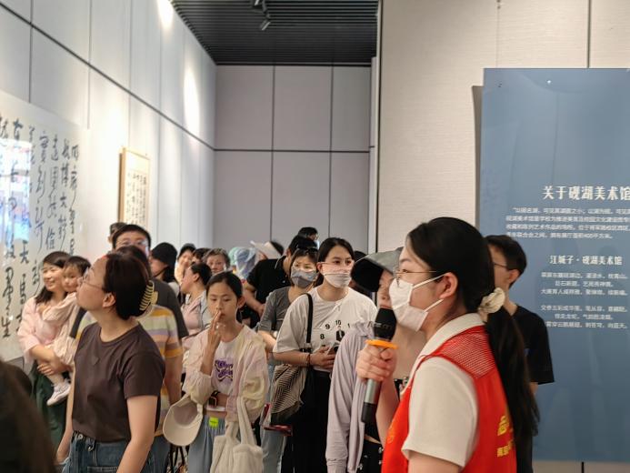 活动当天,砚湖美术馆讲解员以专业的素养和饱满的热情,迎接每一位参观者。