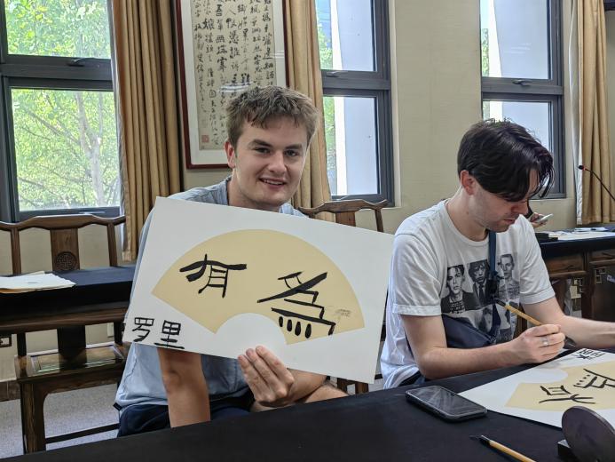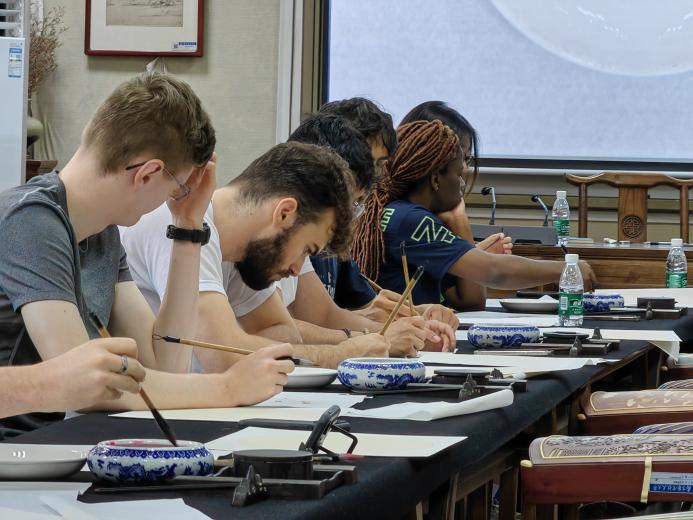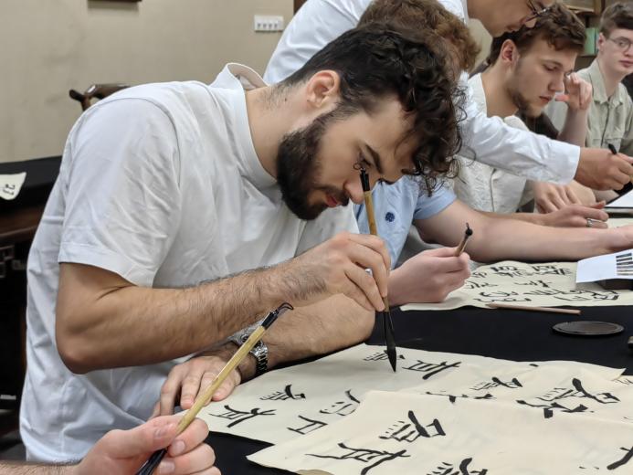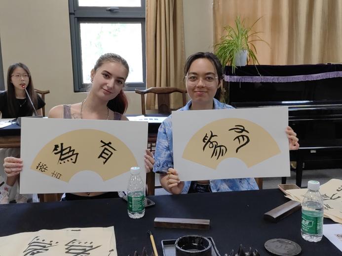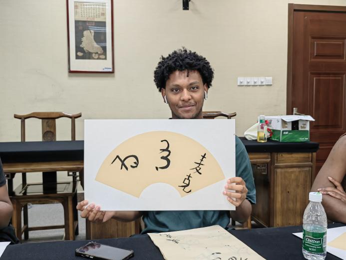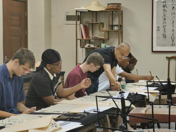 “知足知不足,有为有不为”,书法课堂中,老师从笔画的起承转合讲起,一横一竖、一撇一捺,留学生们全神贯注地书写着古老的汉字,他们在运笔的轻重缓急之间,感受汉字书法的线条之美和深厚的文化意蕴,体会“字如其人”的精神内涵。