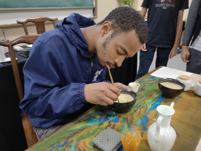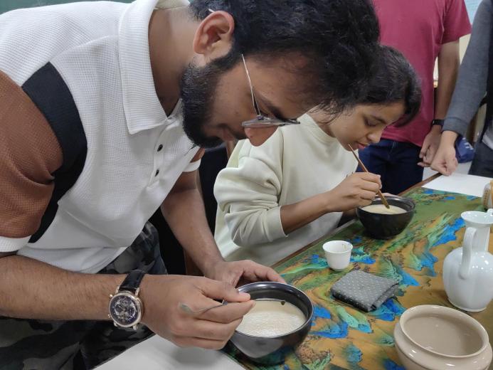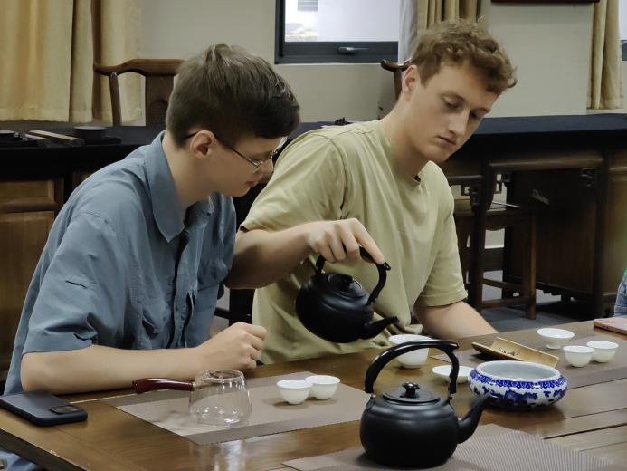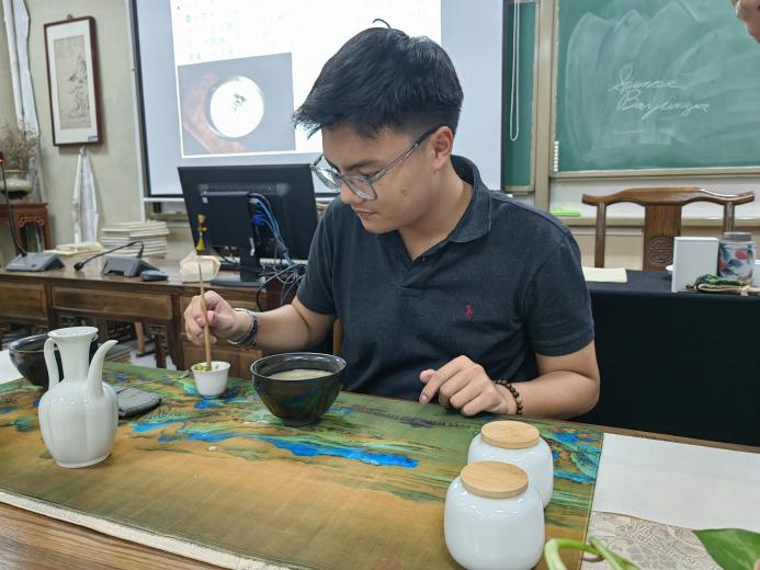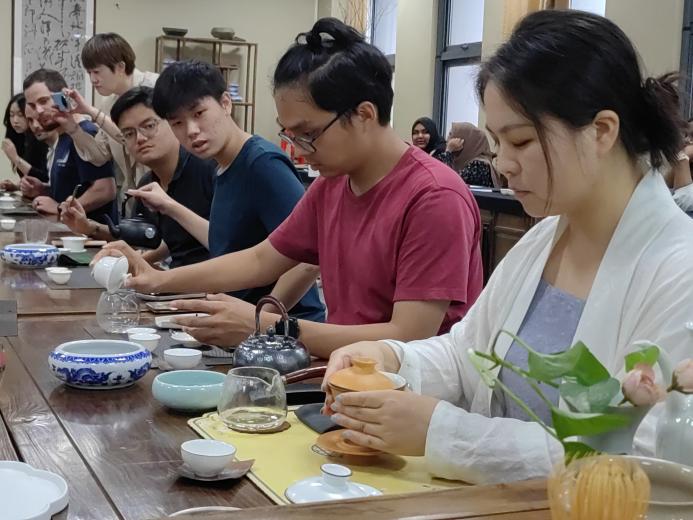 茶艺课上,留学生们学习着茶叶的种类辨识、冲泡技巧以及品茶礼仪。从茶具的选用到水温的控制,每一个环节都蕴含着深厚的文化底蕴。他们轻捧香茗,在悠然的氛围中品味中国茶文化的广博与深邃。