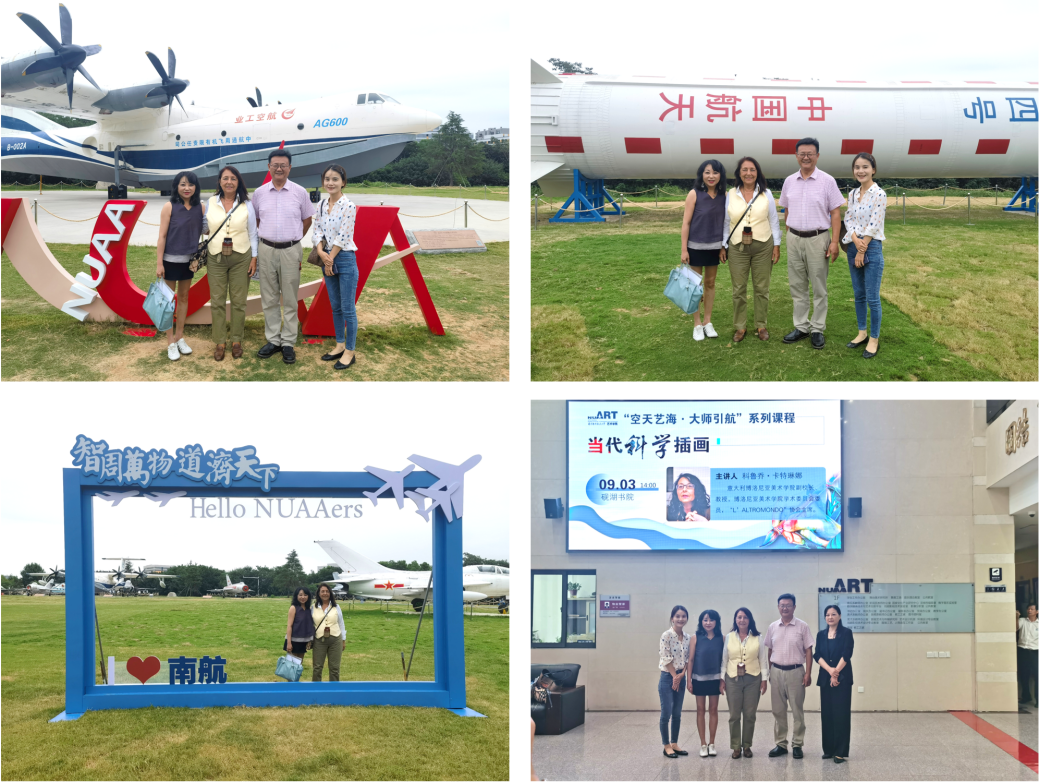动画疯 板俊荣院长对卡特琳娜教授的来访表示热烈欢迎。邀请卡特琳娜教授一行参观了学校的御风园。校园自然风光与现代飞行器和谐地融合在一起,震撼而美丽。板院长向嘉宾介绍了战斗机、直升机等空天装备的入驻背景和功能特点,以及动画疯 师生在航空领域高科技制造中发挥的设计作用。卡特琳娜教授表示,参观御风园使她对于艺术和科技的融合应用产生了深刻的印象。