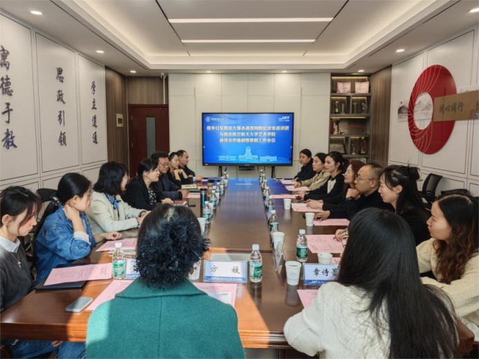会上,学院领导及教师对纪念馆巡讲团的到来表示热烈欢迎。板俊荣详细介绍了学院的基本情况、专业特色及近年来学院在艺术展演方面取得的成果。张钟勤表示,侵华日军南京大屠杀遇难同胞纪念馆是中国唯一一座有关侵华日军南京大屠杀的专史陈列馆及国家公祭日主办地,希望通过本次交流,尽快推动双方共同开展编创情景剧等合作,充分发挥红色资源育人功能。
