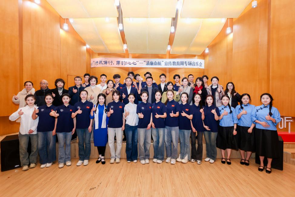 中午,一场以“倡廉”为主题的“午间音悦听”在将军路校区音乐厅举办。音乐会现场,动画疯 音乐系师生带来精彩的表演:小合唱《唱支山歌给党听》与独唱《公仆赞》,以悠扬的旋律、深情的歌声表达着对党的忠诚与热爱,对人民公仆的殷切歌颂;歌曲表演《绣红旗》、朗诵《廉洁颂》描摹了光明正义、廉洁自律的动人篇章;最后,四重唱《在道德星空下前行》与合唱《星辰大海》引领师生在道德与清廉的星空中探索前行,以高尚的品德照亮人生的星辰大海。