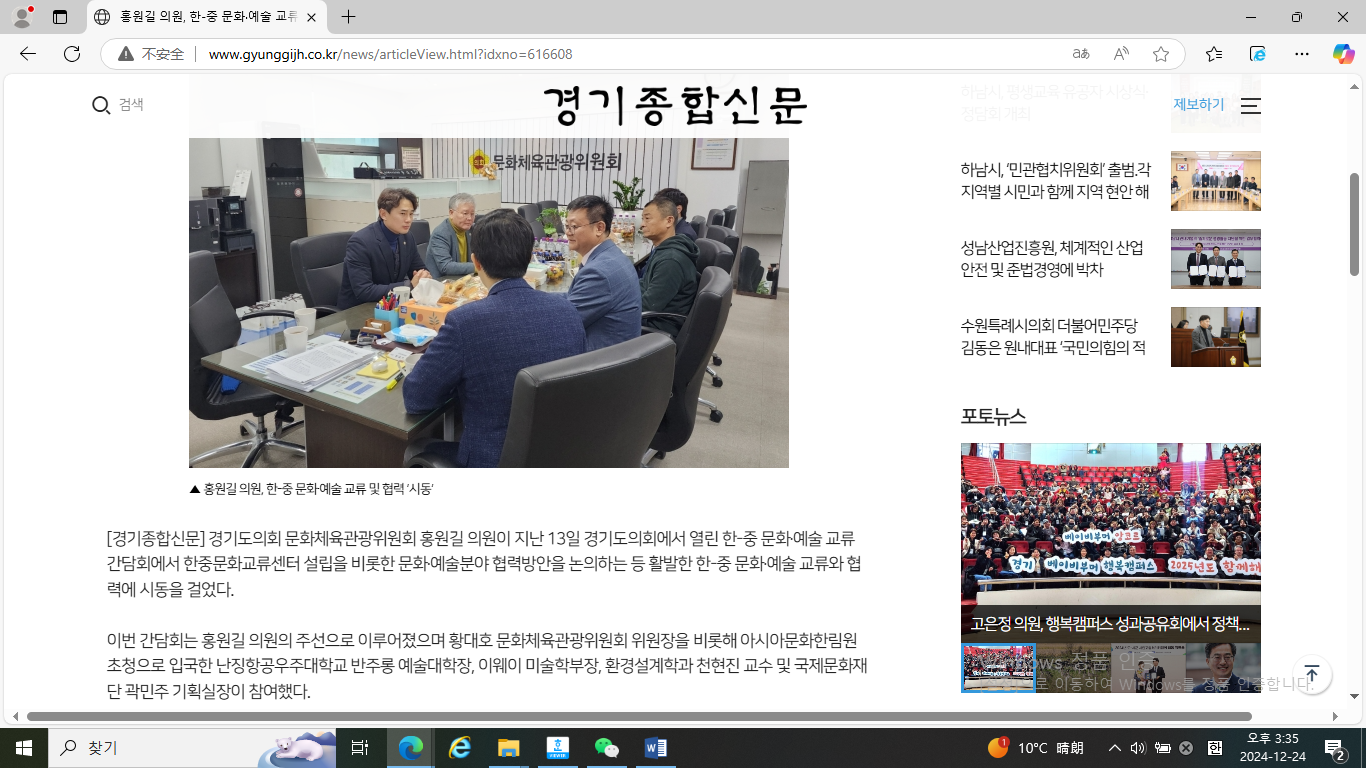 12月13日,代表团与韩国京畿道议会文化体育观光委员会举行了座谈会。此次座谈会由京畿道议会议员洪元吉组织,京畿道议会文化体育观光委员会委员长黄大浩议员亦出席并发表了充满热情的演讲。黄大浩议员对南航动画疯 代表团的到来表示了诚挚的欢迎,并特别强调了中韩交流在京畿道知事金东渊(省级行政区首长)的政策规划中所占据的核心地位。他指出,目前京畿道正将中韩交流作为工作重点,并致力于在经贸、科技、教育、环境、健康、农业、观光等多个领域深化两国合作。黄大浩议员还明确表态,将与京畿道及其议会国际交流相关部门携手,积极探讨合作事宜,为双方合作项目提供全面的支持与保障,共同促进中韩文化交流合作的实质性发展。