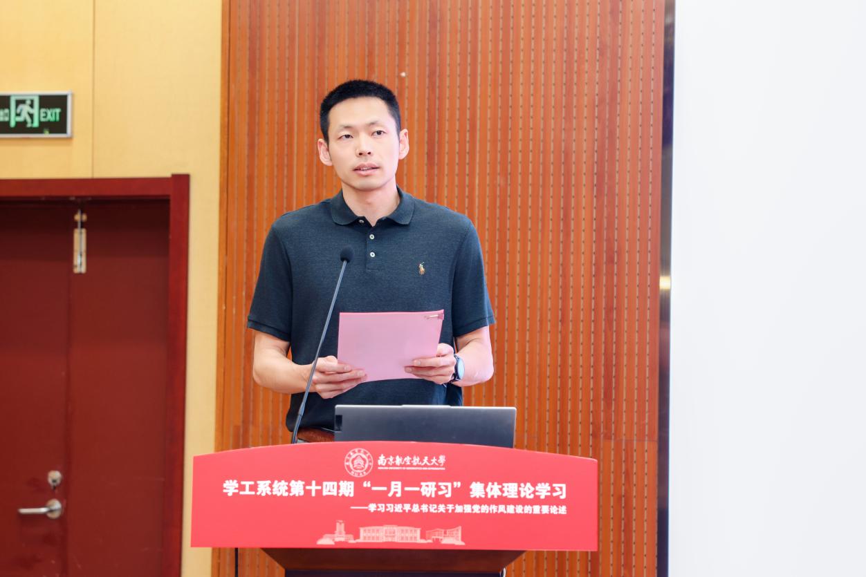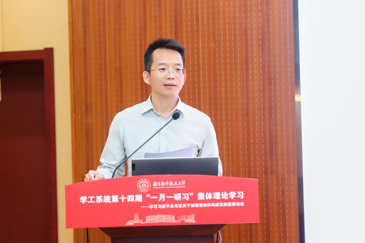会议最后,刘宇雷分享了学习习近平总书记关于加强党的作风建设的重要论述的思考和体会。他指出,作为学校学生日常思想政治教育和管理工作的组织者、实施者、指导者,学生工作人员理应以作风建设新成效推动保持党的先进性和纯洁性,进一步筑牢守好思想政治阵地和意识形态阵地,营造风清气正、向善向上的育人生态,努力实现培根铸魂育新人的工作目标。他从三个方面提出具体要求:一是提高政治站位,深化思想认识,切实增强开展学习教育的政治自觉;二是对标目标要求,把握工作安排,高质量落实学查改各项重点任务;三是坚持问题导向,把握方法规律,深化作风建设务求工作取得实效。他强调,加强党性修养要一以贯之,不断在自我修炼、自我约束、自我改造中检视、砥砺和提高,保持永不变色的党员本色和始终如一的育人初心。