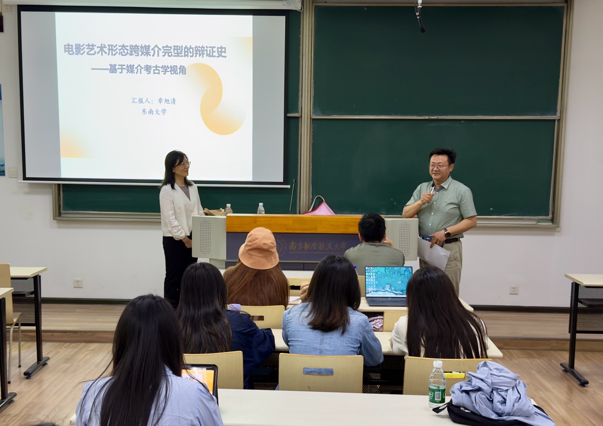 五月的江宁阳光明媚,微风和煦。29日下午,东南大学动画疯 博士生导师章旭清教授应动画疯 动画疯 邀请,为师生带来一场“电影艺术形态跨媒介完型的辩证史——基于媒介考古学视角”的专题讲座。板俊荣教授主持了本次讲座,广播电视艺术学学科负责人罗良清教授担任对话专家,现场学术氛围浓厚,新闻传播系讲师马健、高娜及将军路校区四十余位同学共同出席本次活动。