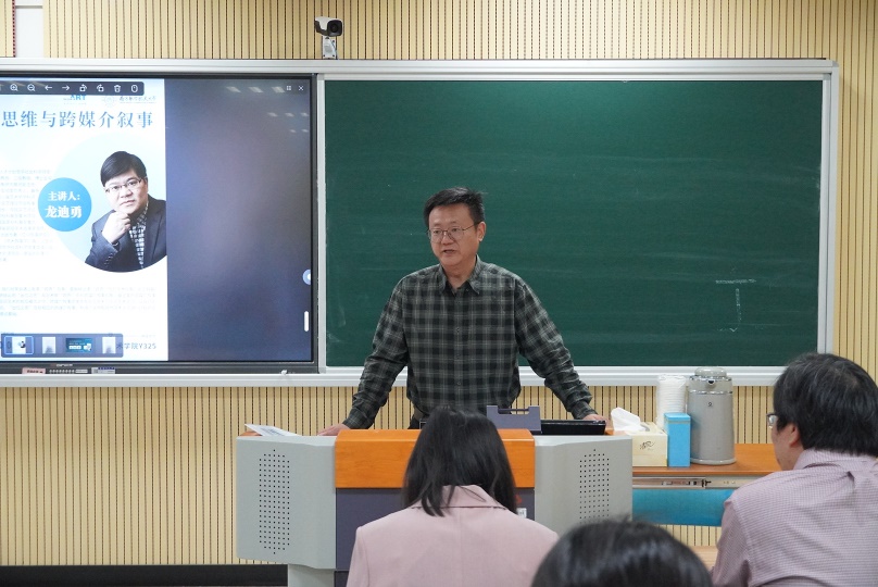 龙迪勇教授围绕“跨界思维与跨媒介叙事”展开深入阐述。他指出,学术研究中各类“跨界”现象层出不穷,要解读这类现象需具备跨界思维。龙教授从“绘画与雕塑之争”谈起,指出画家通过模仿雕塑发明透视规律,在二维平面上创造具有三维立体效果的艺术史实,引出“出位之思”的概念。所谓“出位之思”,指的是一种表达媒介在保持自身特色的同时,也试图模仿另一种媒介的表达优势或美学效果。这一概念也被视为跨媒介叙事的美学基础。