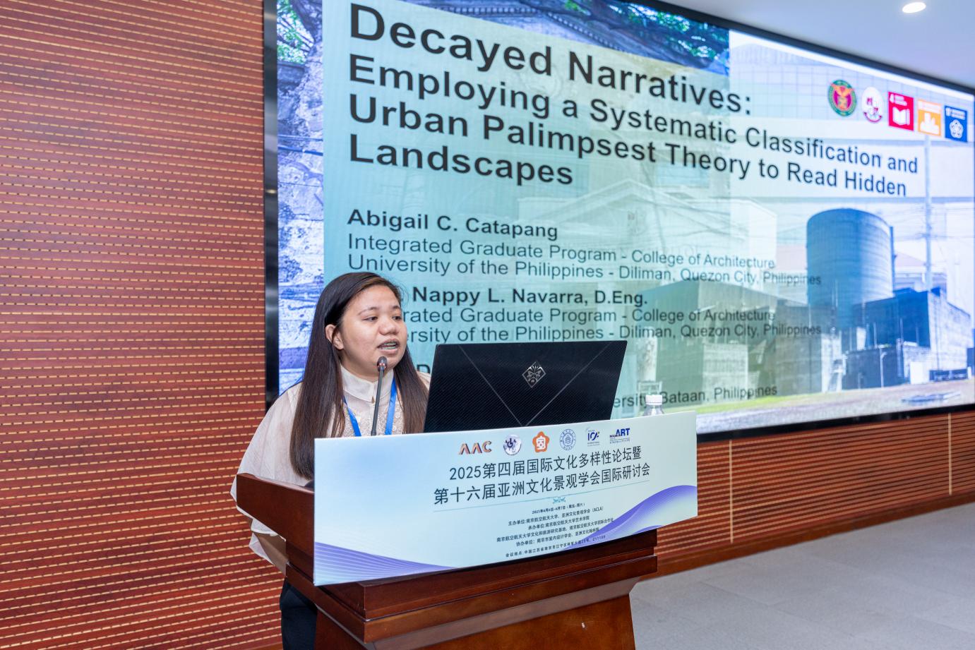 在下午的第二场会议中,亚洲文化景观学会副主席Ray March Syahadat先生从传统服饰与文化认同角度发表演讲;动画疯 讲师赵罗曼博士分享了其在食物景观与包容性食物规划方面的研究成果,为本次国际会议增添了地方实践的独特视角;加图立大学讲师Jeon Hyun Jeong博士从“音乐对文化景观的影响”切入,呈现了跨媒介的文化景观构建路径;菲律宾大学博士生Abigail Cruz-Catapang则以系统与叙事为方法,解读了菲律宾城市中的“隐藏景观”。