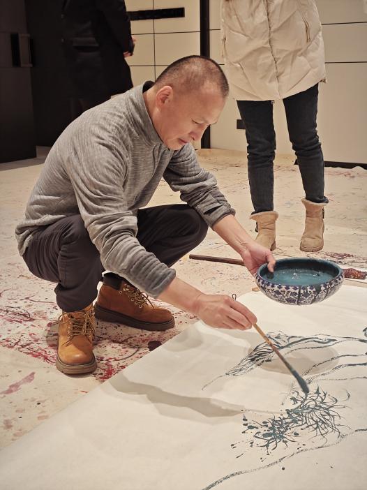 三个多小时的沉浸式观摩与对话转瞬即逝。对于南航这九位主要专注于理论研究的硕士研究生而言,这无疑是一次的深度学术实践。他们不仅亲眼目睹了长杆笔如何在巨幅创作中挥运力道,理解了墨色的层次如何在一次次叠加中产生无穷变化,更重要的是,他们亲身感受了一位卓有成就的艺术家如何将深奥的画论与鲜活的创作融为一体,如何在坚守笔墨核心的同时,勇敢地打开创作的边界。归途中,学生们仍在热烈讨论着“迁想妙得”的当代诠释、空间分割与传统意境的融合等话题。这次走出校园、直面大家与经典的外出学术实践,如同一把钥匙,为他们打开了一扇通往艺术本体与创作现场的大门,让那些原本停留在典籍文字中的理论,变得可触、可感、可思,更在他们心中播下了一颗关于如何连接传统与未来的种子。